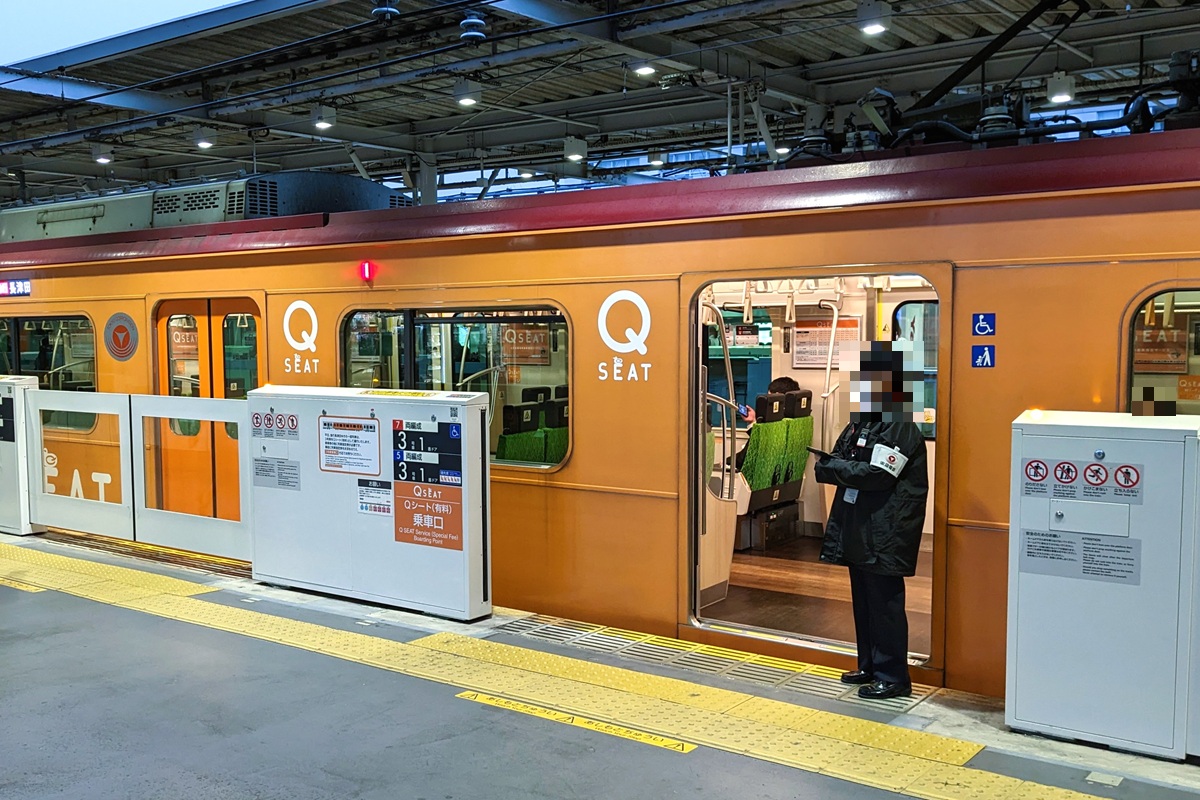 大井町線では2018年12月14日より、平日夜の大井町駅始発下り急行列車の一部を対象に、有料座席指定サービス「Qシート」が運行されています。現在、6000系(一部編成)および6020系の3号車に連結されたQシート車両には乗降口となる片側1か所以外を締め切る(ドアカット)機能が設けられ、大井町線内の途中停車駅[2]旗の台駅・大岡山駅・自由が丘駅・二子玉川駅の4駅。ではホームドア側もドアカットに対応しています。