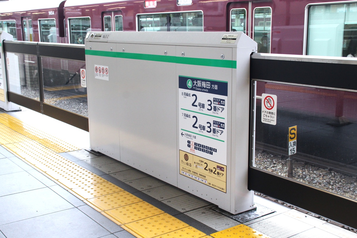 扉部分を黒色、筐体を白色としたデザインは十三駅のタイプから継承されました。桂駅2~5号線(2024年12月稼働開始)までの設置駅では筐体部分に路線ごとのラインカラーが装飾されていましたが、以降の設置駅ではこれが省略されいます。