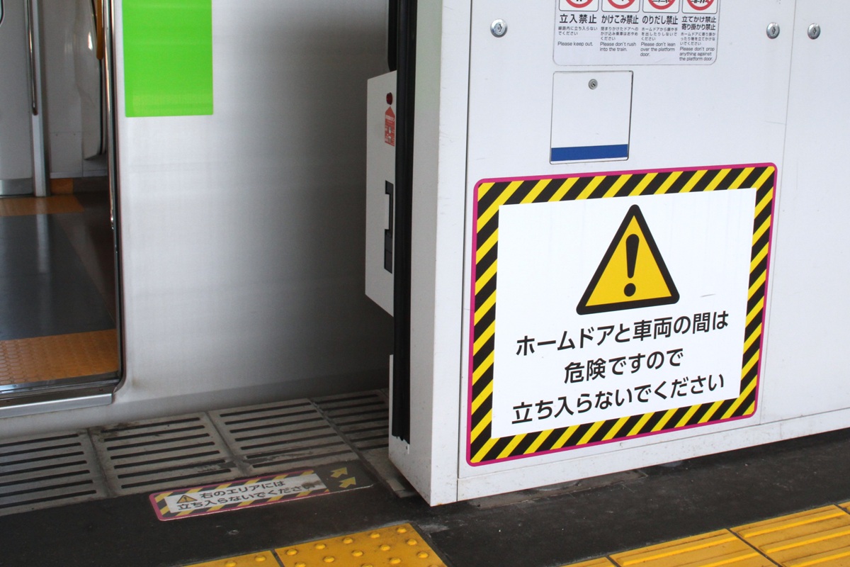一方、閉扉は車掌による手動操作ですが、他路線の一般的な取り扱いとは逆でホームドア→車両ドアの順に操作するのが特徴です。前述の通り、出発方向の最後部には停止位置が多少ずれていても操作しやすい「テープスイッチ」が併設されており、通常はこちらを使用します。