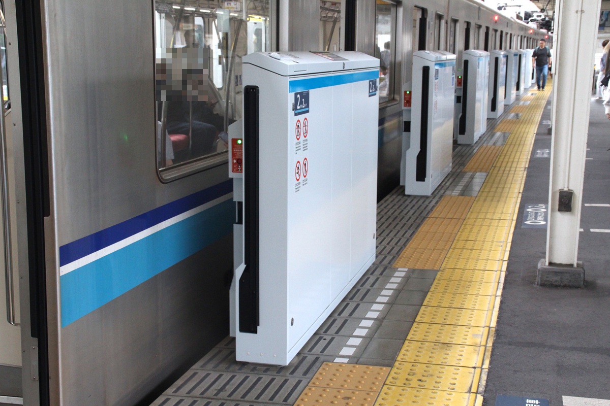 東西線ホームドアのうち2022年度までの設置駅では、地上側の各種センサで列車の定位置停止・車両ドアの開閉を検知し、それに追従してホームドアを自動開閉するシステムが導入されています。この方式は車両側の改造が不要なので、トランスポンダを用いた車両ドアとの開閉連携方式と比べてホームドア早期整備に貢献しました。