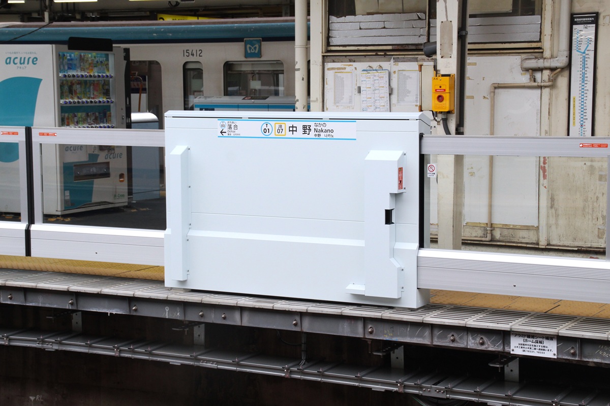 メーカーは大開口タイプと同じくナブテスコです。大開口タイプは扉部分が黒を基調としたスタイリッシュなデザインだったのに対して、本タイプはシルバー基調となったためイメージはかなり変わりました。なお、茅場町駅および中野駅では同線のラインカラーであるブルーの装飾が施されましたが、それ以外の設置駅では省略されています。