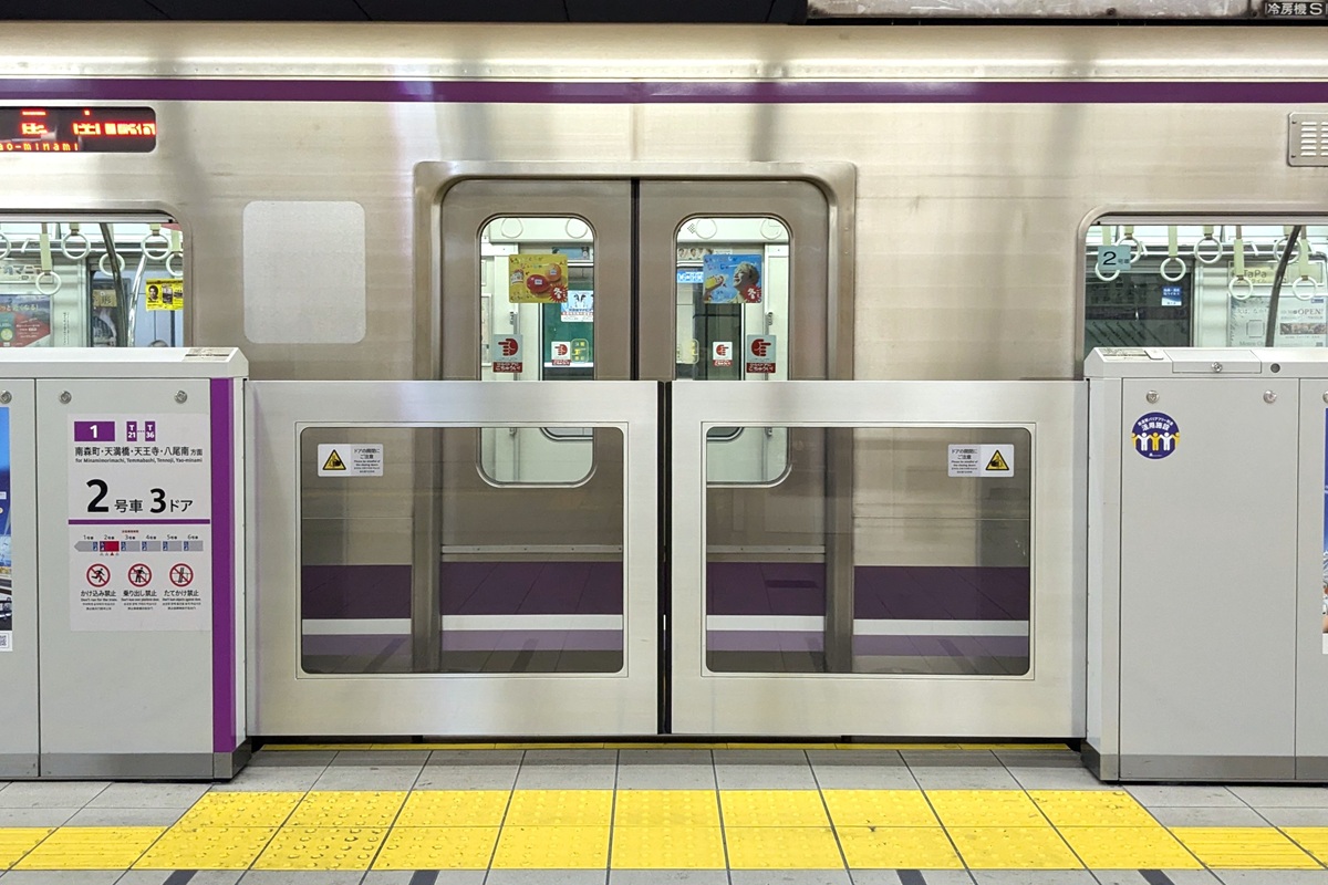 デザイン面での特徴として、各開口部の縁に縦方向のラインカラーが設けられ、号車・ドア番号などを記したサインシステムもより見やすく充実した内容となりました。これらのデザインは、のちにOsaka Metroのホームドアにおける標準仕様として他路線でも採用されていきます。