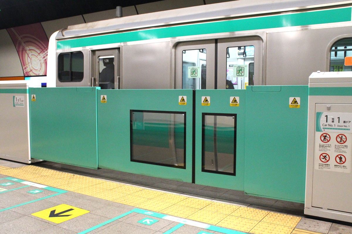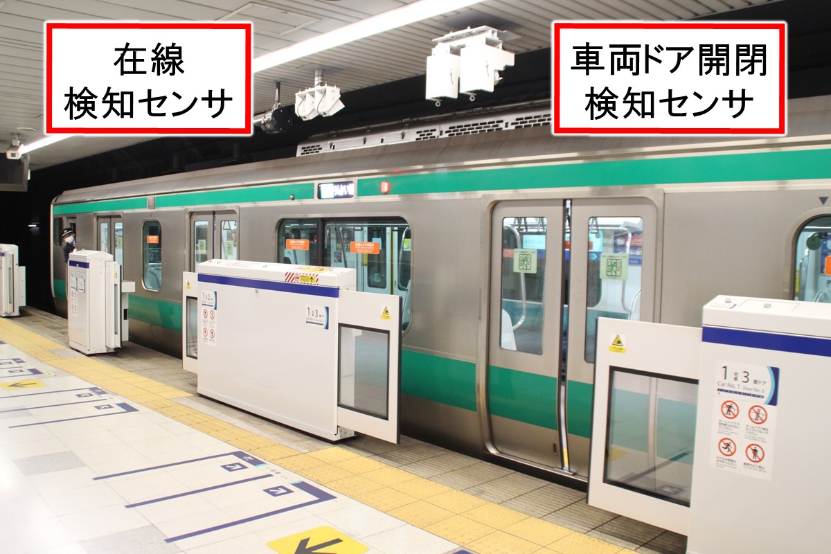 同線を走行する自社所有車両とJR東日本所有車両では先頭車のドア位置が大きく異なることから、当該箇所には開口幅4m超の二重引き戸式大開口タイプが採用されています。また、国内で初めて、地上側の各種センサのみで車両の動きに追従した自動開閉を行う「地上完結型連携システム」が本格的に導入されました。